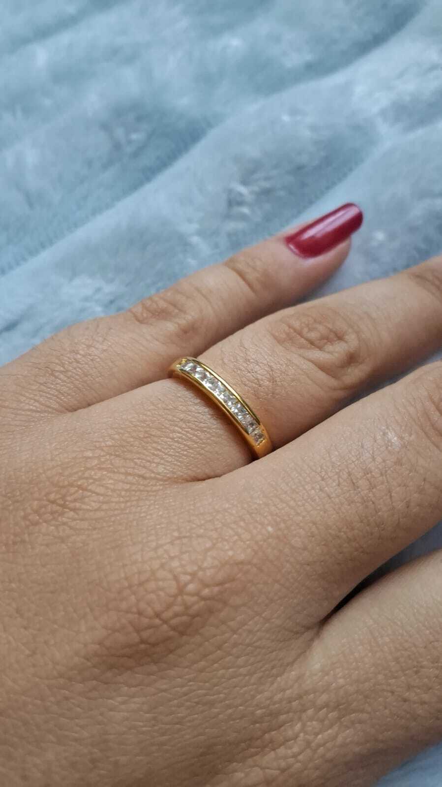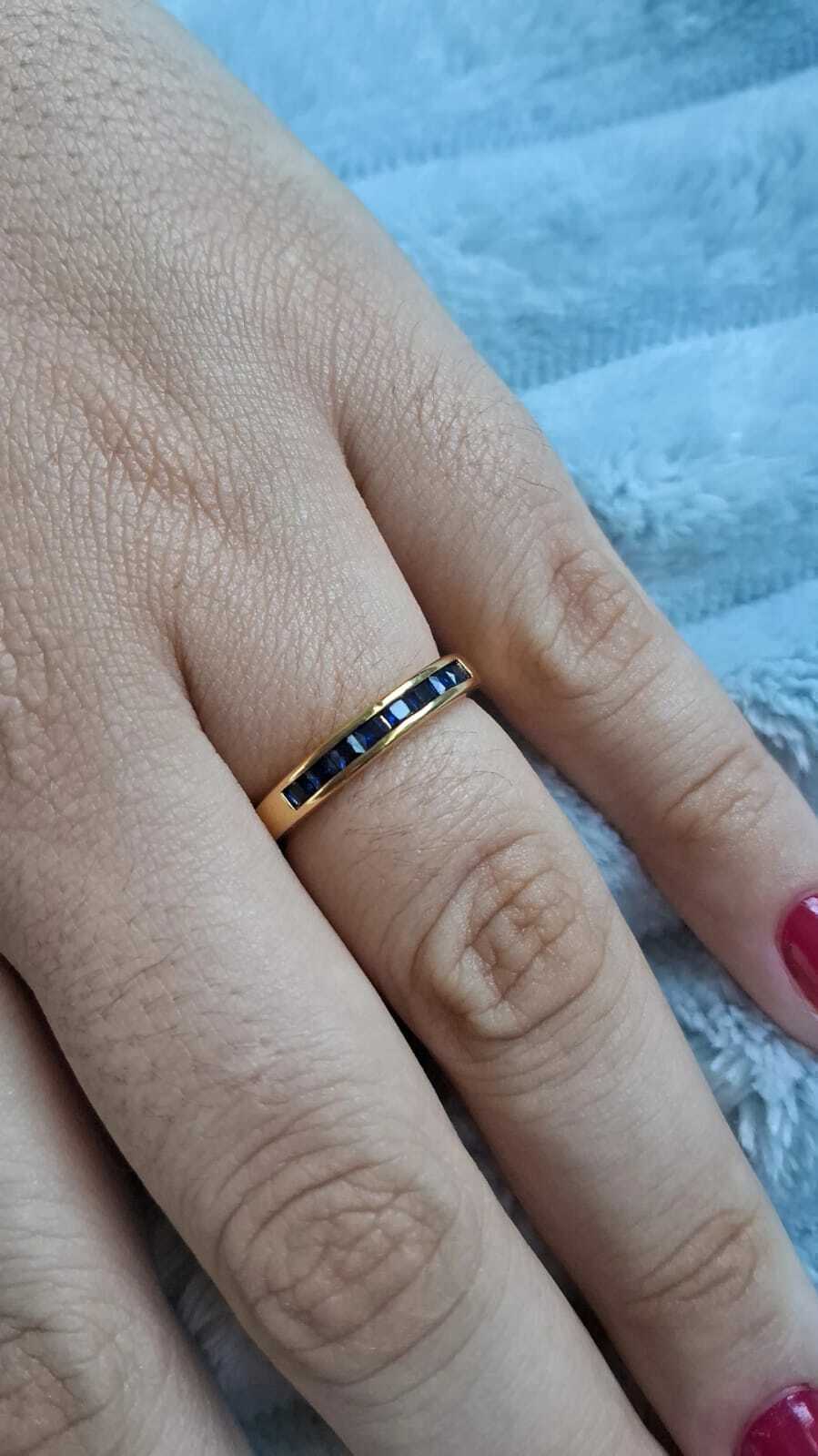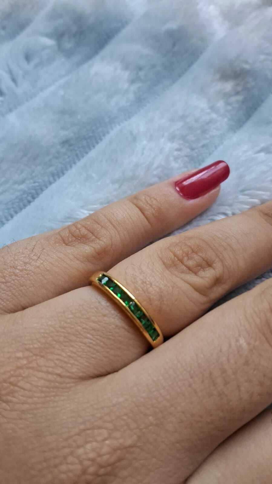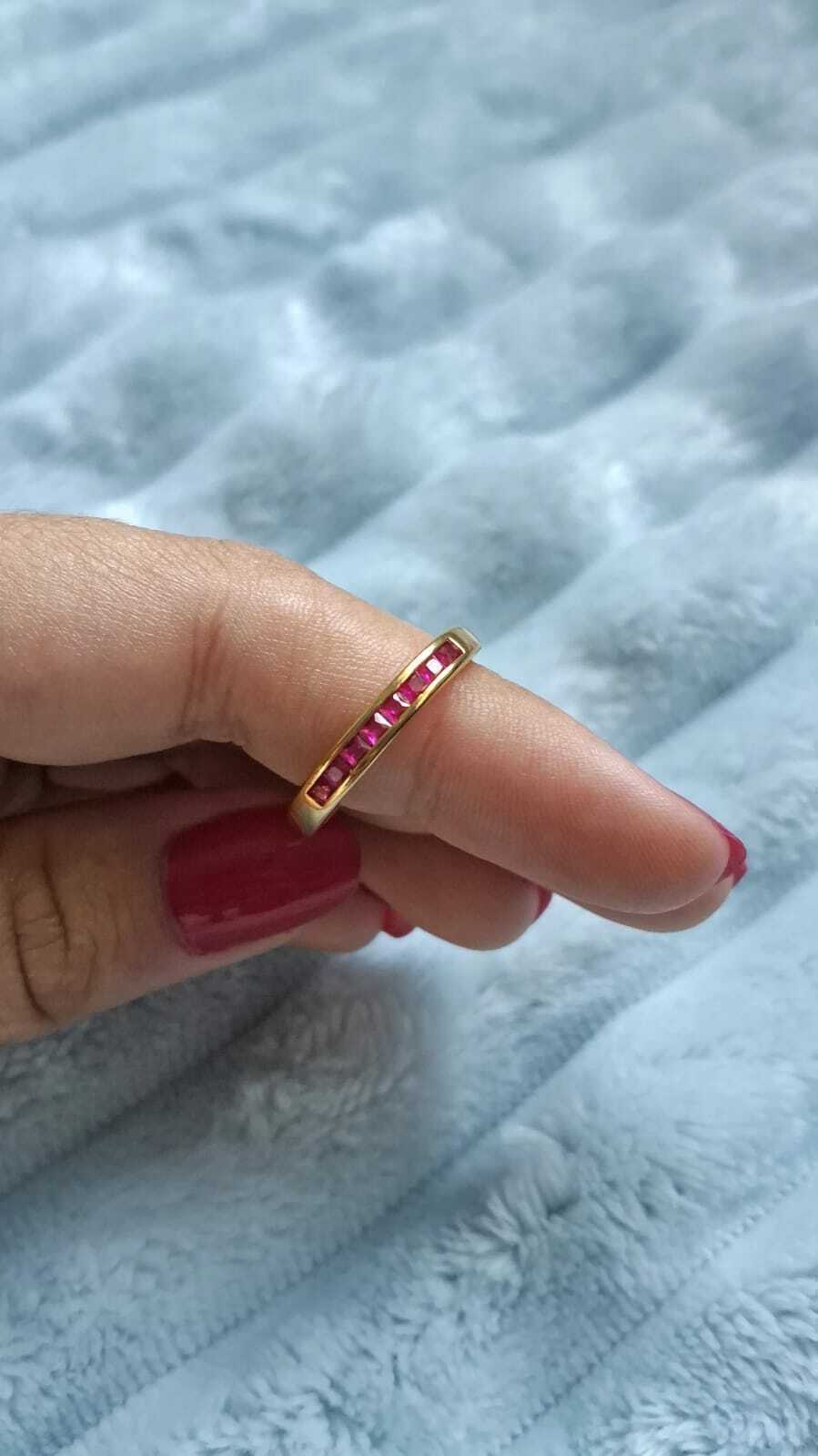 ✨ Dê um toque de cor e elegância ao seu look com o nosso Anel Meia Aliança Ladrilhos em ouro 18k!