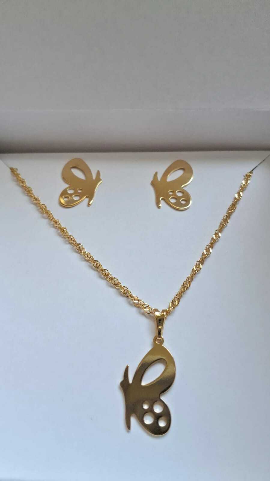 ✨ Encante-se com o nosso Conjunto de Semijoias Folheadas a Ouro 18k com Colar, Brinco e Pingente!
