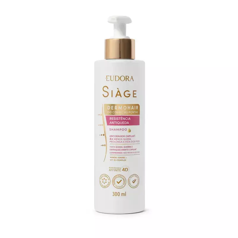 Transforme sua rotina de beleza com o Shampoo DermoHair Resistência Antiqueda SIÀGE e experimente a sensação de cabelos mais fortes, resistentes e visivelmente revitalizados a cada lavagem. Sua beleza merece esse cuidado de excelência.